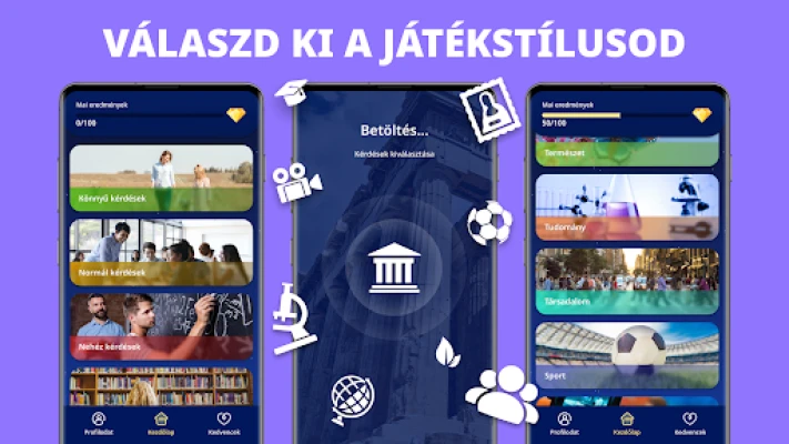 Akár a Földrajz rejtelmei, az Ételek története, a Tudomány csodái, a Történelem fordulatai vagy az Állatok birodalma érdekel, a **Zen Quiz** széleskörű általános ismeretekre vonatkozó kérdéseivel gondoskodik róla, hogy mindig találj valami újat és érdekfeszítőt. Kifejezetten azoknak fejlesztettük, akik javítani szeretnék koncentrációs képességüket, kiegyensúlyozottabbak szeretnének lenni, vagy egyszerűen csak szórakozva enyhítenék a mindennapi szorongást. Egy ideális társ, ha egy kis elterelésre, szellemi feltöltődésre vagy a belső béke megőrzésére vágysz, miközben gazdagítod tudásod.