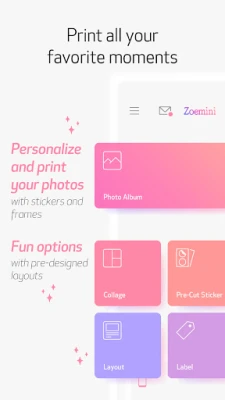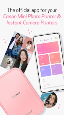 A Canon Mini Print alkalmazással a Canon Zoemini Mini és Zoemini S készülékeket használhatja. Szabja személyre fotóit matricákkal, szöveggel, keretekkel és szűrőkkel! Készítsen felvételeket, vagy importálja azokat közösségi médiából. Hozzon létre egyedi 2x3 hüvelykes nyomatokat, és díszítse fel velük a környezetét. Fejezze ki kreativitását!