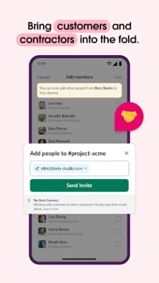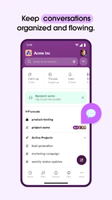 A Slack segítségével a csapaton belüli párbeszéd sosem volt még ilyen rendezett és áramvonalas. Minden projekthez dedikált csatornát hozhat létre, így a beszélgetések áttekinthetőek maradnak, és a világ bármely pontjáról együtt dolgozhat kollégáival, partnereivel. A közvetlen videóhívásokkal és képernyőmegosztással élőben vitathatják meg a feladatokat, de ha a szöveges üzenet nem elegendő, hang- vagy videóklipekkel kristálytisztán oszthatja meg komplex gondolatait. A projektek sikere érdekében az előre elkészített és személyre szabható sablonok, valamint a beszélgetések mellett élő megosztott dokumentumok kiváló alapot biztosítanak. A feladatok kiosztása, a teendők nyomon követése és a mérföldkövek meghatározása is zökkenőmentes a fejlett projektmenedzsment funkciókkal.
