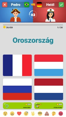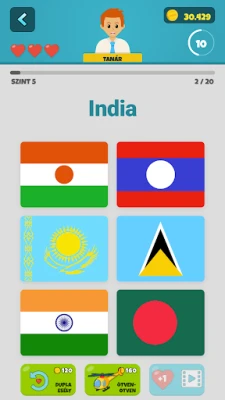A tudás felé vezető útja 15, egyre összetettebb szakaszon keresztül vezet minden játéktípusban. Minden egyes szinten 20 gondosan kiválasztott kihívás várja Önt – legyen szó zászlókról, fővárosokról, kontinensekről vagy pénznemekről –, melyek mindegyikére mindössze 20 másodperc áll rendelkezésre a helyes válasz megadására. De ez több, mint egy gyors vetélkedő; minden válasz mögött mélyreható információk rejlenek, mint például az országok népessége és területe, így a Zászlók 2: Földrajz Quiz egy páratlan forrás a globális adatok elsajátítására és elmélyítésére.